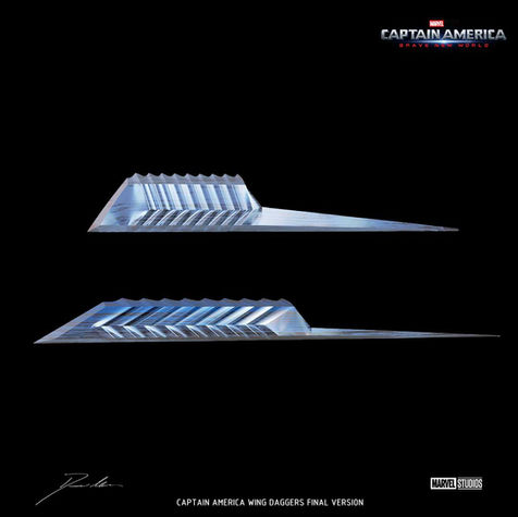 Other designs I contributed included the EMP handgun, wrist communicators for both Captain America and Falcon, a device we referred to as the “Sterns Device,” and a set of mini rockets. I also designed a pair of daggers that launch from Captain America’s wings during his fight with Red Hulk—definitely one of the cooler moments to help visualize.