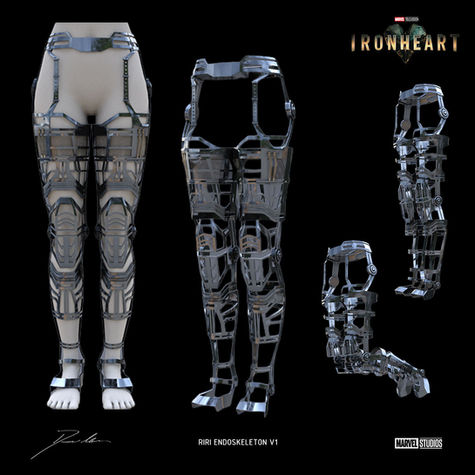 One of my main tasks was developing Riri’s leg endoskeleton—both a clean, pristine version and a damaged version. These pieces had to be engineered carefully to fit the actress and function in a practical, manufacturable way, which made the process both challenging and incredibly rewarding. I also designed the arc reactor for Riri, making sure all the parts were workable for fabrication.
