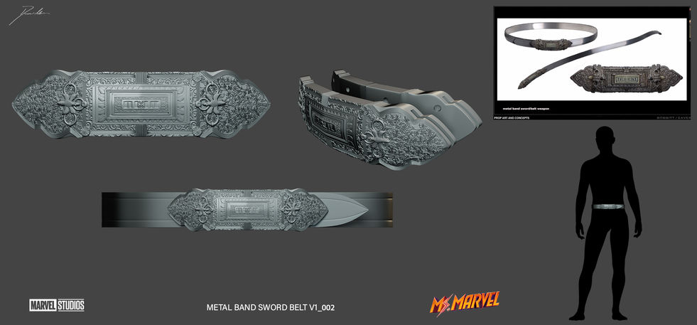 For Props, I worked closely with legendary prop master Russell Bobbitt. I was tasked with 3D modeling Ms. Marvel’s original bangle, creating two versions — a short and an extended design — based on provided concept art. Although the bangle was digitally replaced in the final show, it was an incredible experience helping bring the design to life in physical form. I also 3D modeled the Damage Control Sonic Rifle, modifying it from concept artwork provided by John Eaves, as well as the Red Dagger arm pin, which was similarly adapted from the provided designs. Additionally, I modeled and 3D printed a belt sword for one of the Clandestine characters, based on concept art from John Eaves.